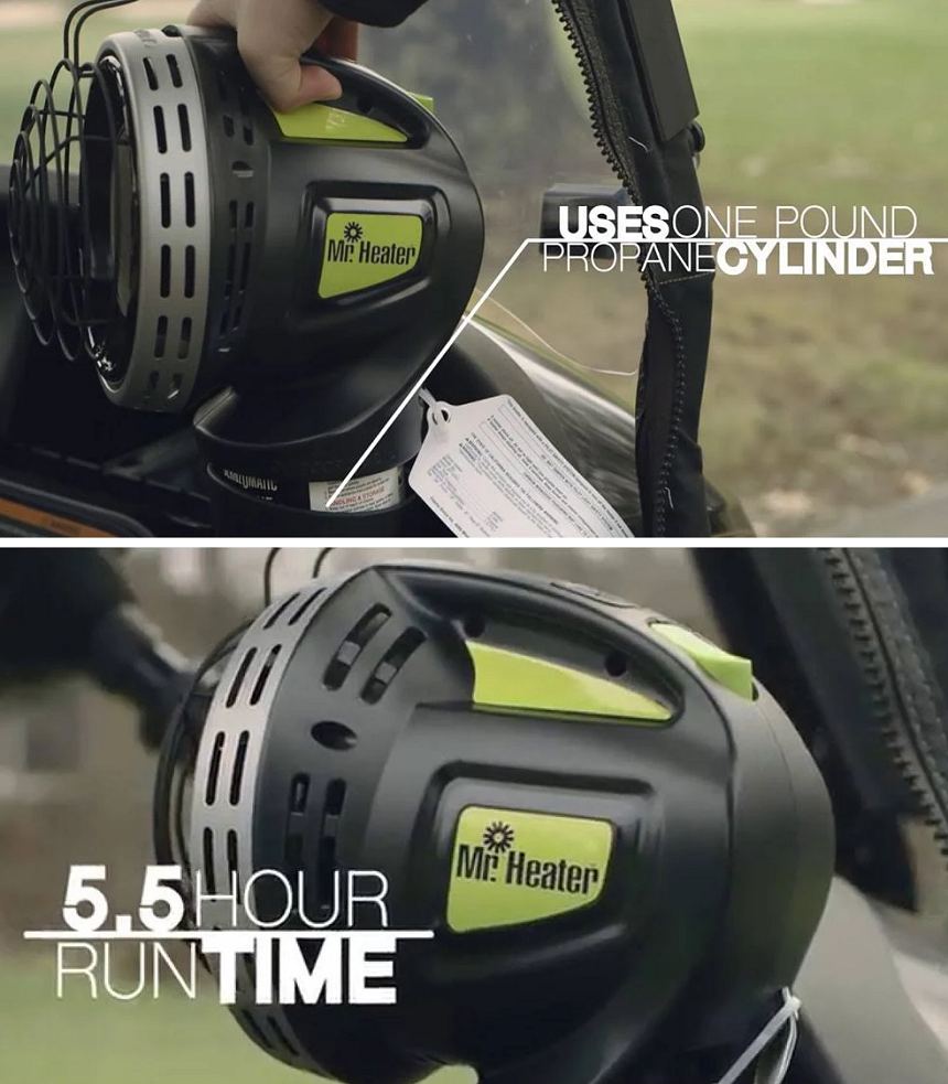 This patented 4,000 BTU liquid propane heater connects directly to a 1 lb. LP cylinder and is the perfect solution for heating in a golf cart. The unit features a wind resistant burner and pilot system for optimal heat output in windy conditions and when the golf cart is moving. It also features a unique safety tip over switch that minimizes nuisance shut-offs when driving on bumpy cart paths. The integrated handle and cup holder adapter make this unit easy to transport and compatible with most golf cart cup holders. To light the unit push then hold the ignition button and the integrated Piezo sparking mechanism will take care of the rest. With the oxygen depletion sensor (ODS) you can be sure that you will enjoy years of comfortable safe heat.